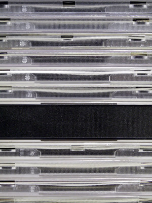 This lace looks black, but it is really white. It is backlit, and the snow outside the window is white, so the lace is in silhouette.